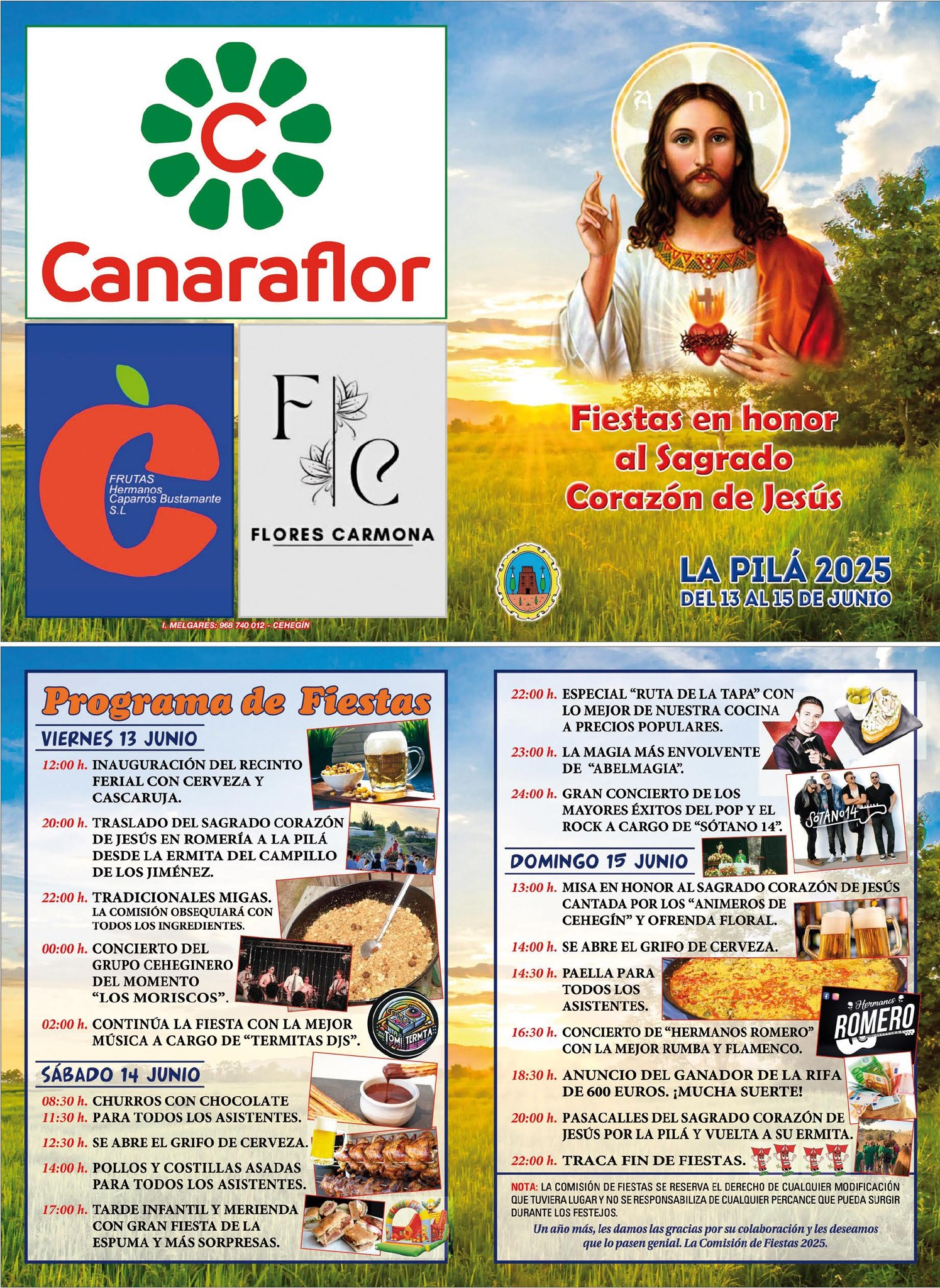 La pedanía Ceheginera de La Pilá, celebrará sus fiestas en honor del Sagrado Corazón de Jesús, con muchas actividades gastronómicas, musicales, religioso y pirotécnico.
